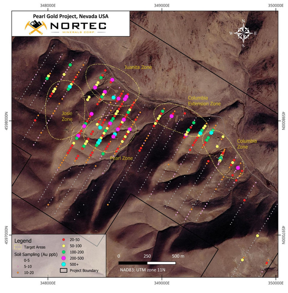 The Pearl Gold Project is a newly acquired gold exploration property in the Varyville Mining District of Humboldt County, Nevada. Nortec Minerals Corp. has entered into a purchase option agreement to acquire 69 Federal Lode claims totaling 1425.5 acres. The project hosts multiple high‑grade historical mines, modern drill discoveries, and district‑scale gold potential across several target zones.